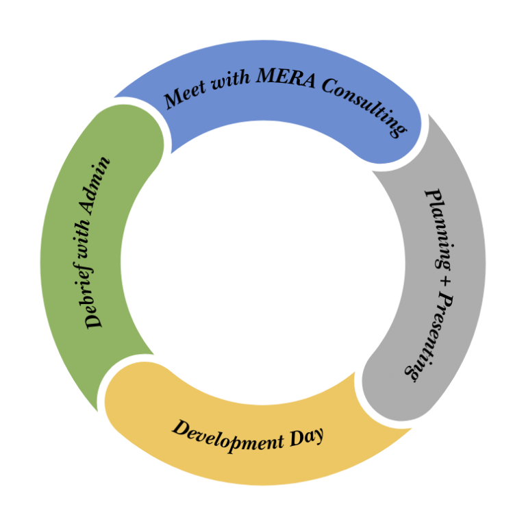 Within the “Development Days” (full or half days), your staff will experience support and growth within your school’s highest leverage needs and goals. Through hands-on activities and discussions, your staff will walk away with applicable next steps to implement within their classrooms to further enhance their teaching practices and outcomes. Prior to the development day, a MERA consultant will meet with the school’s administration to identify the focus area and present a plan to approach for the scheduled development day.